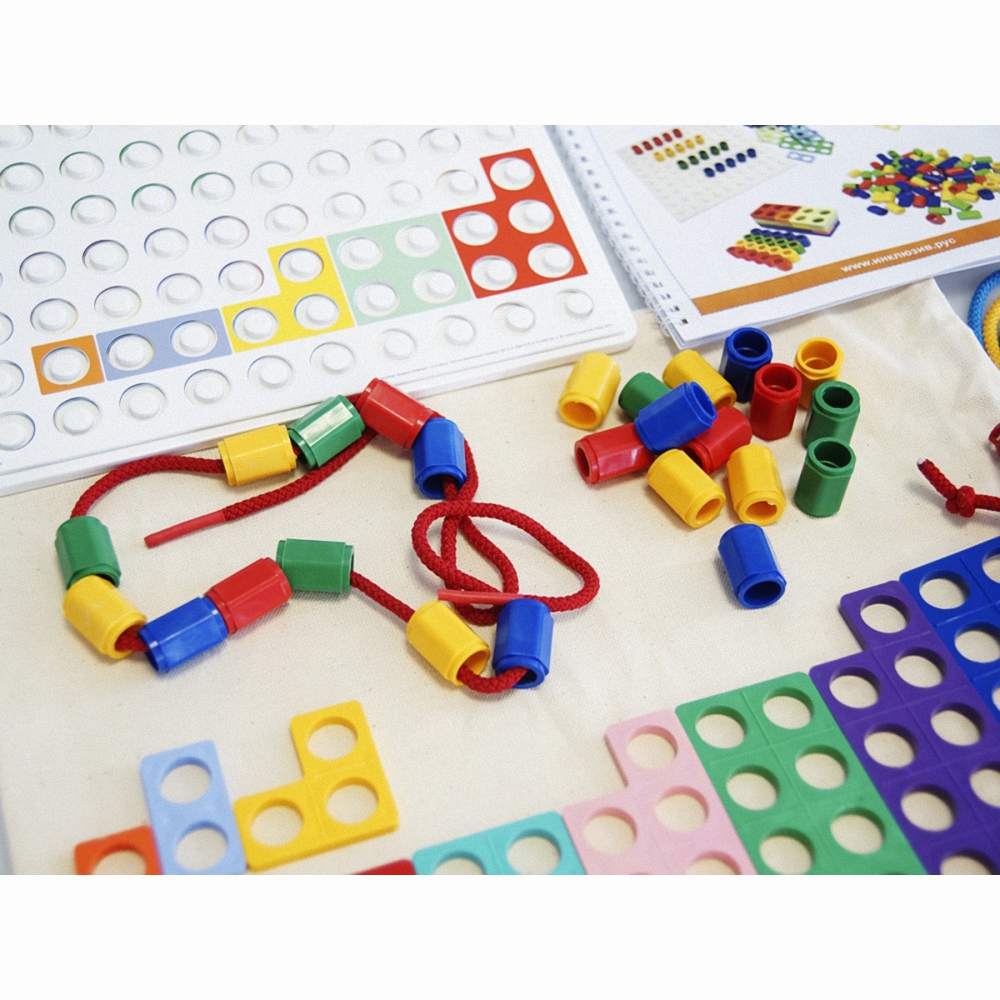 Помимо чисто арифметических навыков конструктор позволяет развивать воображение и креативное мышление через построение на специальной столешнице различных конструкций из фигурок. А также путем распознавания элементов развивающей игры на ощупь, когда объемная фигурка достается из мешочка.