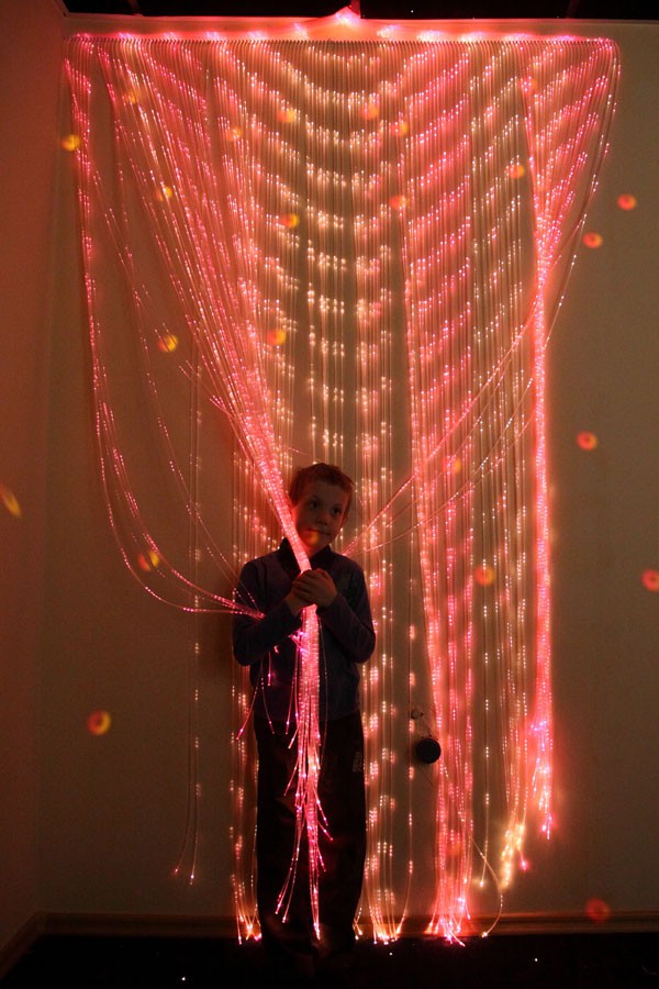Занавесь из мерцающих волокон, подвешенных вертикально.