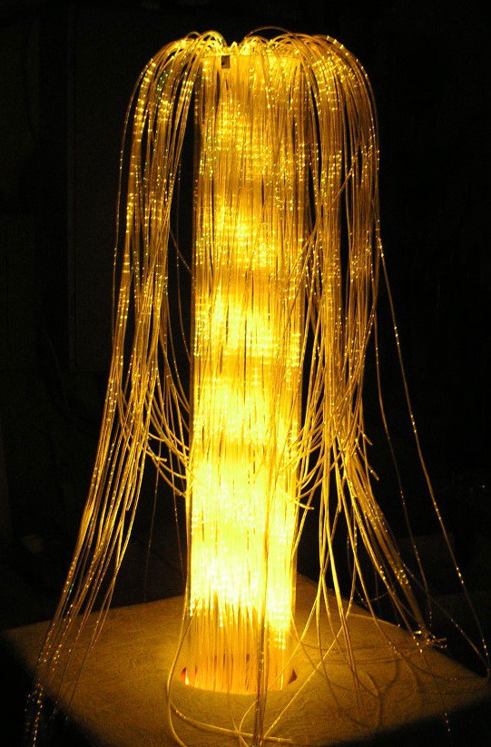Завораживающий каскад фибероптических волокон с боковым свечением, струящихся вдоль прозрачной трубы высотой 1 м. Мягкая тумба. Идеален для центрального светового модуля сенсорной комнаты.