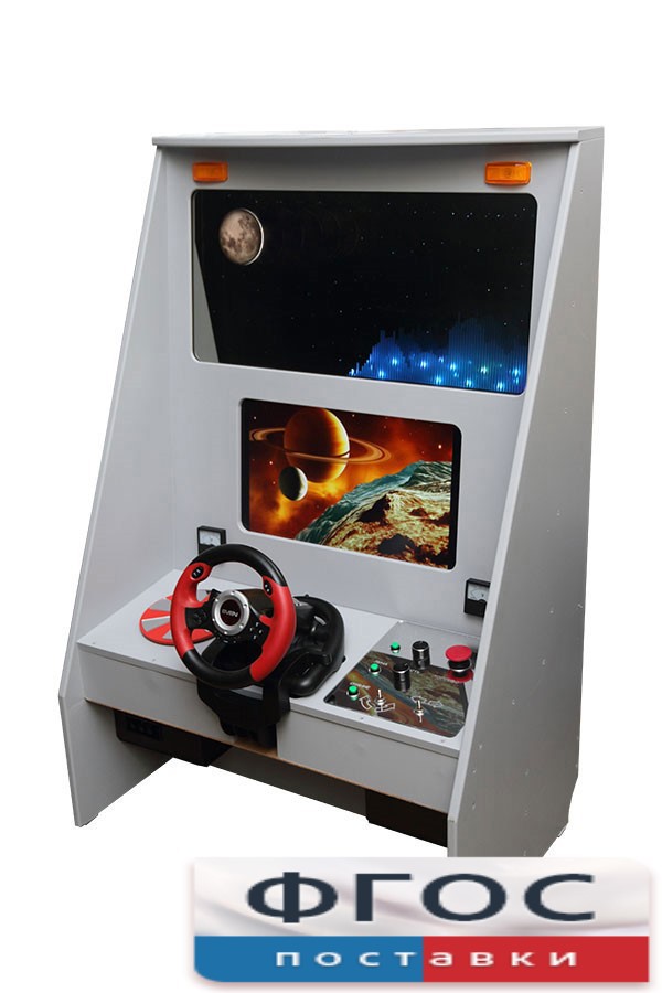 Космический пульт представляет собой интерактивную панель с элементами мультимедиа (более 300 фотографий и несколько образовательных мультфильмов на космическую тематику). Изделие предназначено для использования в составе сенсорных или детских игровых комнат для проведения занятий с детьми школьного возраста. Панель стимулирует познавательную и игровую активность детей, а получаемые картины «звездного неба» могут быть использованы и для релаксации. Основная «идея» панели – имитация приборной доски управления космическим кораблем с видом в иллюминатор звездного неба за бортом.
