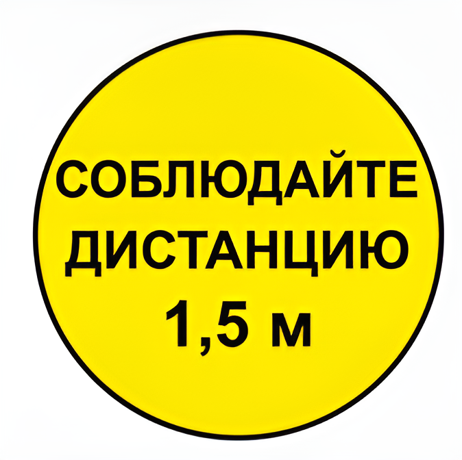 Главная Каталог Оборудование для профилактики коронавируса Наклейка соблюдай дистанцию 1,5м (круг 320мм)