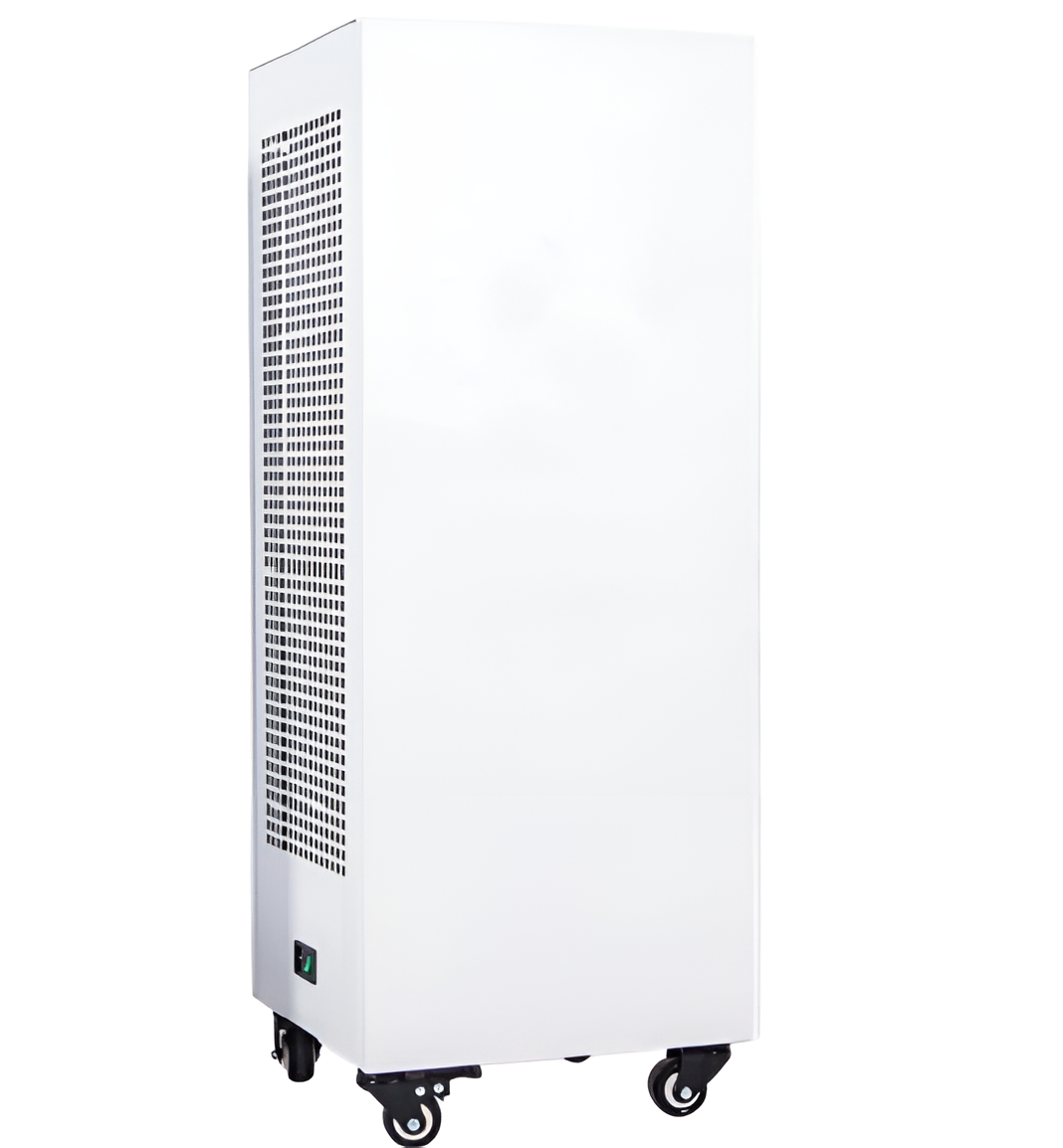 Особенности: мобильное исполнение, колёса для перемещения. Цвет корпуса: белый. Пульт дистанционного управления для включения/выключения и выбора режима работы рециркулятора.