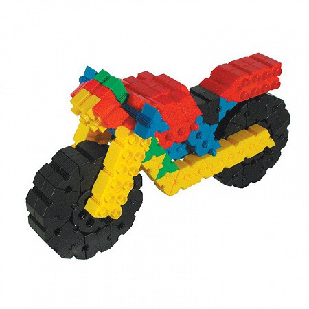 Конструктор «Мотоциклы» состоит из ярких деталей треугольной и квадратной формы, колеса, соединительные и направляющие элементы для сборки 3D моделей 4 мотоциклов и множества других интересных объектов. Уникальный способ крепления позволяет соединять детали по 6 (шести) направлениям, предоставляя неограниченные возможности для развития фантазии ребенка.