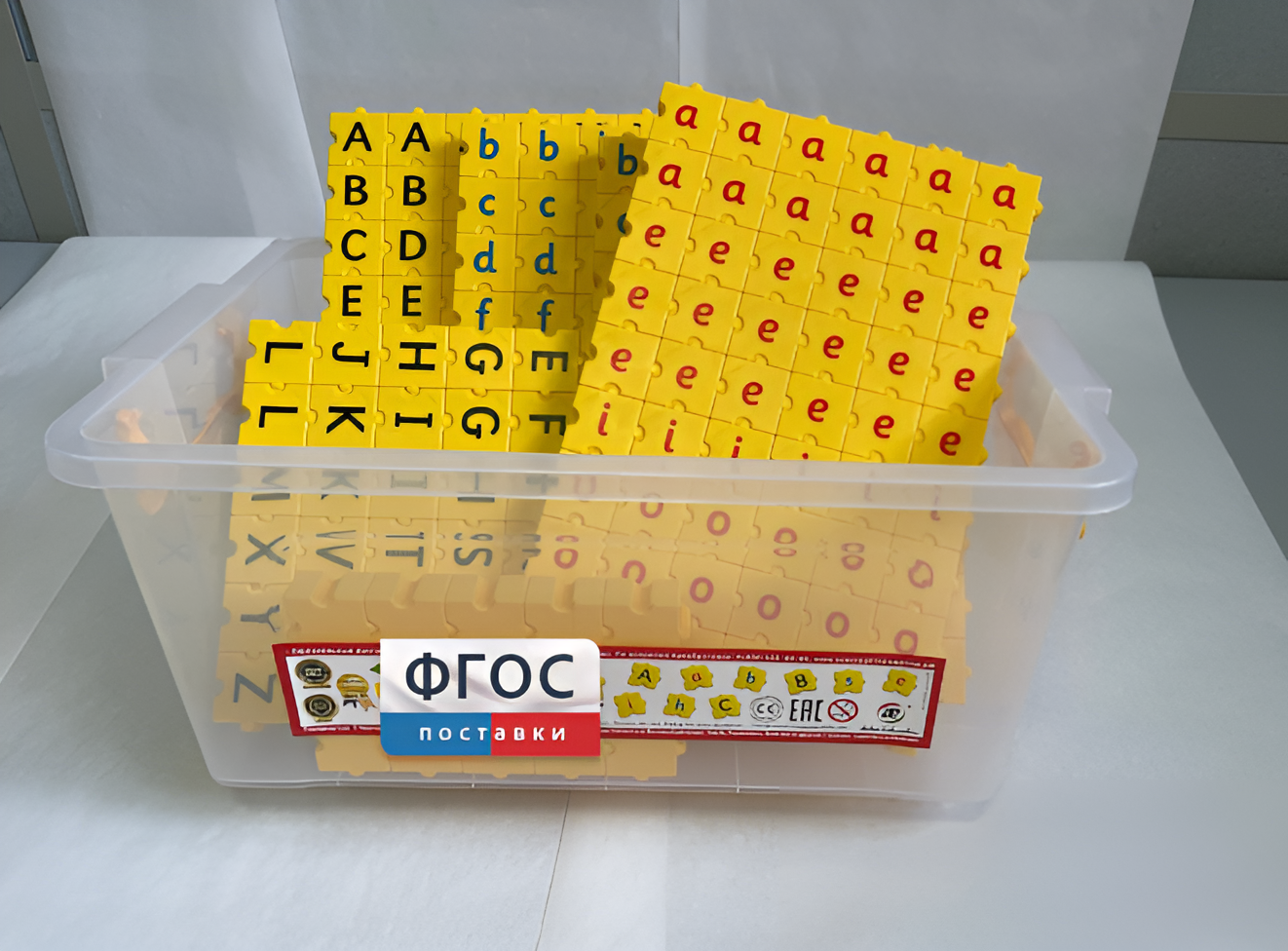 Обучающий конструктор «ПРОслова Английский язык» применяется для увлекательных занятий английским языком и чтением. Состоит из деталей желтого цвета с нанесенными буквами и знаками препинания, соединяемых особым способом, исключающим неправильное расположение букв. Соединение крепко держит детали между собой, что очень удобно при составлении слов или предложений. Собранное слово ребенок может не только положить на стол (парту), но и взять в руки и показать педагогу (родителю), который сразу видит результат и если нужно исправит ошибку. Цветовое выделение букв дает возможность ребенку быстрее найти гласные (красный цвет), согласные (синий цвет) и заглавные буквы (черный цвет). Конструктор помогает выучить буквы, собирать из букв слоги, а затем фразы и предложения, осваивать правила орфографии и пунктуации. Комплекс заданий, упражнений и игр дает возможность значительно расширить словарный запас, развить память, речевые навыки, воображение, мышление детей.