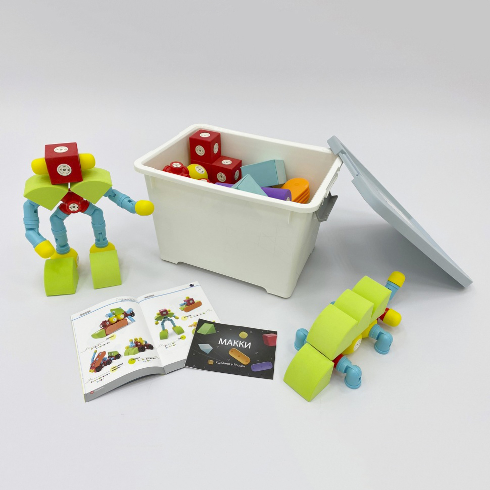 Конструктор «МАККИ 120» — набор цветных магнитных деталей (крупных геометрических фигур с магнитными креплениями), рассчитанный на группу учеников до 16 человек.