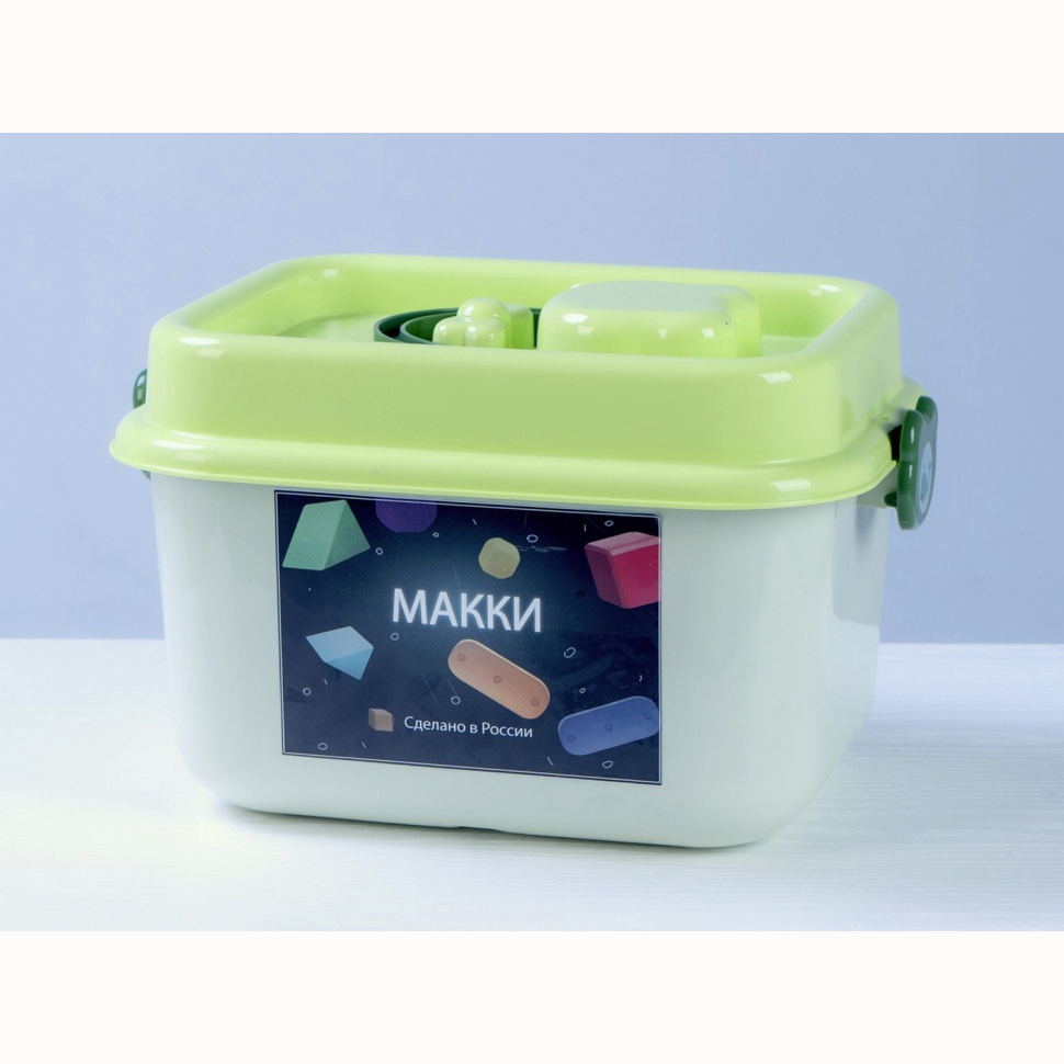 Конструктор «МАККИ 60» — набор цветных магнитных деталей, крупных геометрических фигур с магнитными креплениями. Детали конструктора окрашены в приятные однотонные цвета, со звуковым эффектом погремушки.