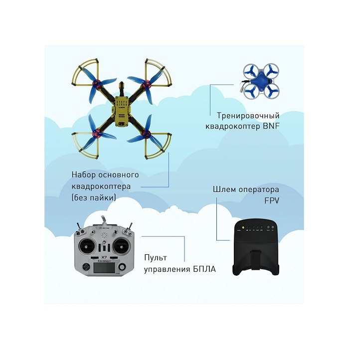 Образовательный комплект предназначен для изучения основ разработки и пилотирования беспилотных летательных аппаратов (БПЛА) типа "Квадрокоптер". Пройдя поэтапное обучение с использованием образовательного комплекта, учащиеся приобретут следующие навыки: сборка, настройка, программирование и пилотирование беспилотным летательным аппаратом.