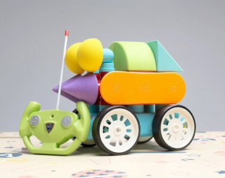 Роботизированный мягкий магнитный конструктор, состоит из 36 деталей, из которых можно собрать до 25 моделей роботов. В комплекте поставляется беспроводной контроллер для управления моделями.