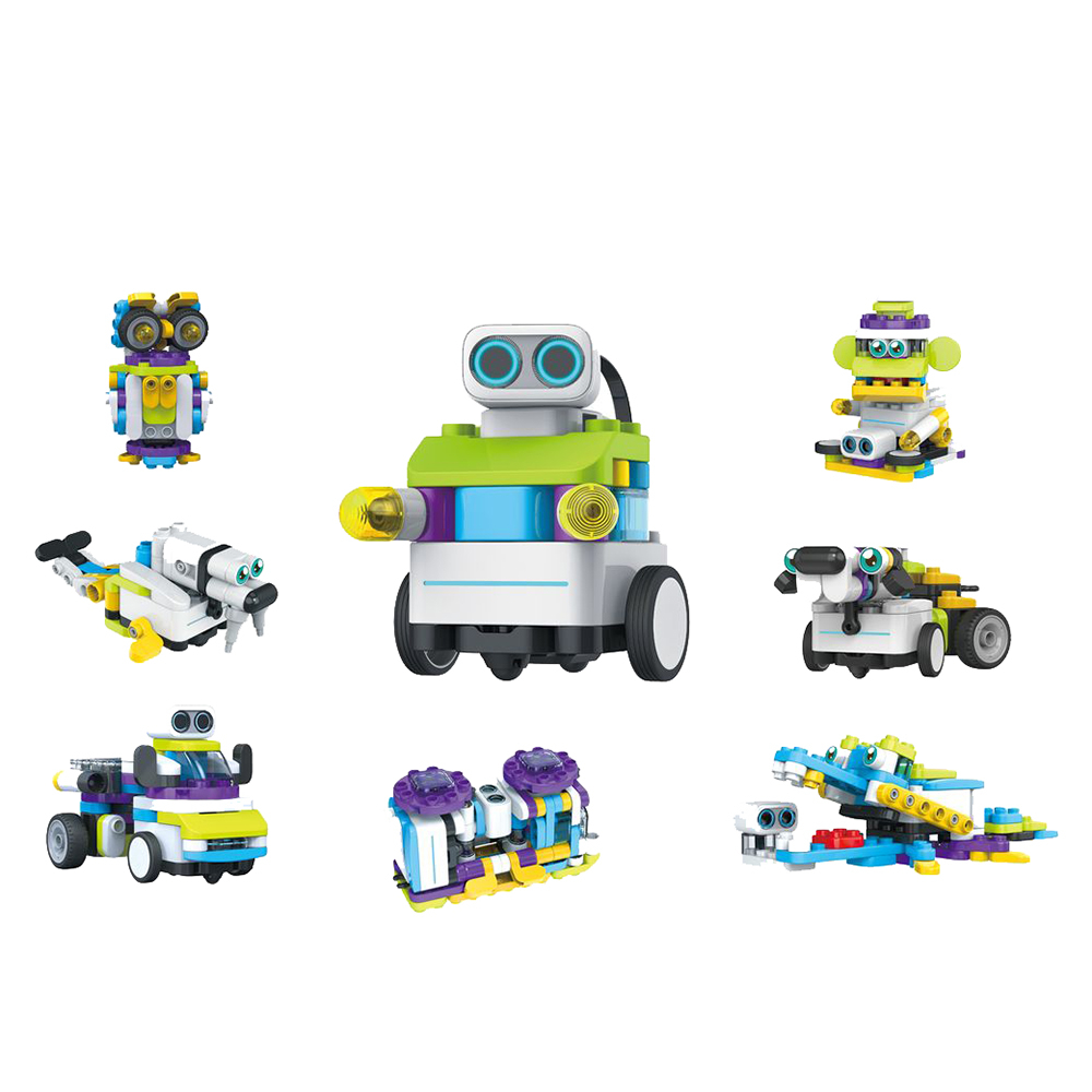 Набор позволяет собрать одного из восьми уникальных веселых роботов. В составе набора содержится программируемый блок управления с двигателями и модулями связи, датчик расстояния, сервоприводный блок и конструктивные элементы для постройки робота. Программирование осуществляется в визуальной среде на мобильном устройстве с использованием игровой дополненной реальности. Подключение по Bluetooth. Робот может двигаться, светиться, танцевать, и издавать звуки.
