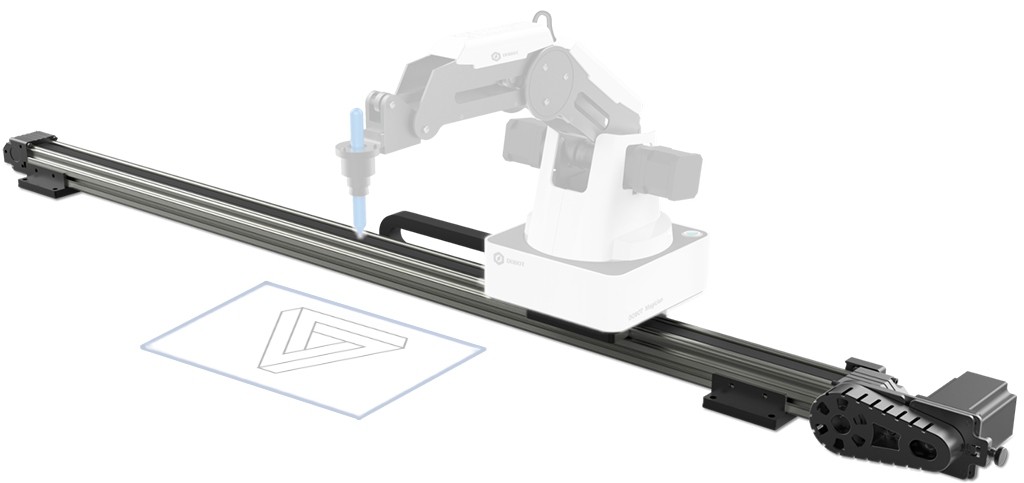 Комплект линейных перемещений для манипуляторов Dobot Magician обеспечивает увеличение рабочей зоны в несколько раз, позволяя расширить возможности моделируемой производственной линии или увеличив площадь для выполнения рисования и лазерной гравировки.