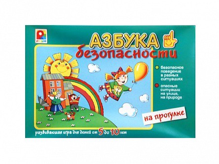 Развивающая игра "Азбука безопасности на прогулке" предназначена для обучения детей в возрасте от 5 до 10 лет основам безопасного поведения дома, на улице, на природе, также способствует развитию внимания, логики и связной речи.