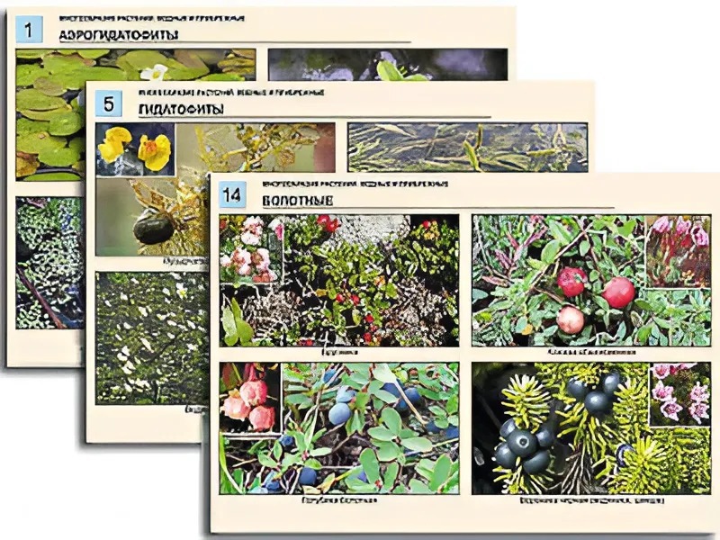 Комплект таблиц по ботанике раздаточных "Многообразие растений. Водные и прибрежные" (16 штук, А4, ламинированные) - fgospostavki.ru - Челябинск