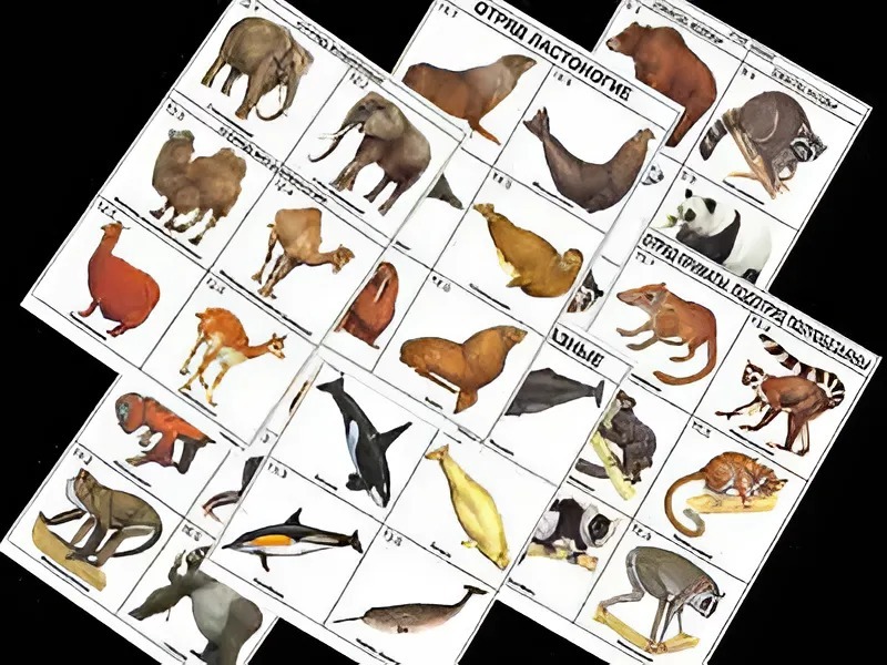 Комплект таблиц по зоологии раздаточных "Разнообразие животных. Млекопитающие." (цветные, ламинированные, А4, 16 штук)