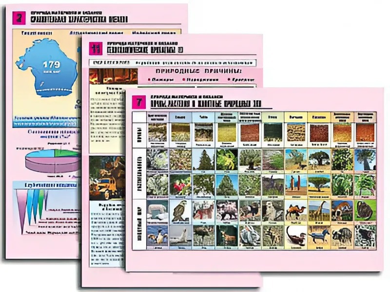 Комплект таблиц по географии "Природа материков и океанов" раздаточные (цветные, ламинированные, А4, 12 штук) - fgospostavki.ru - Челябинск