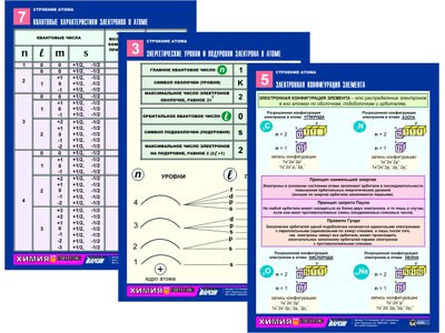 Комплект таблиц по химии раздаточных "Строение атома" (цветные, ламинированные, А4, 8 штук)