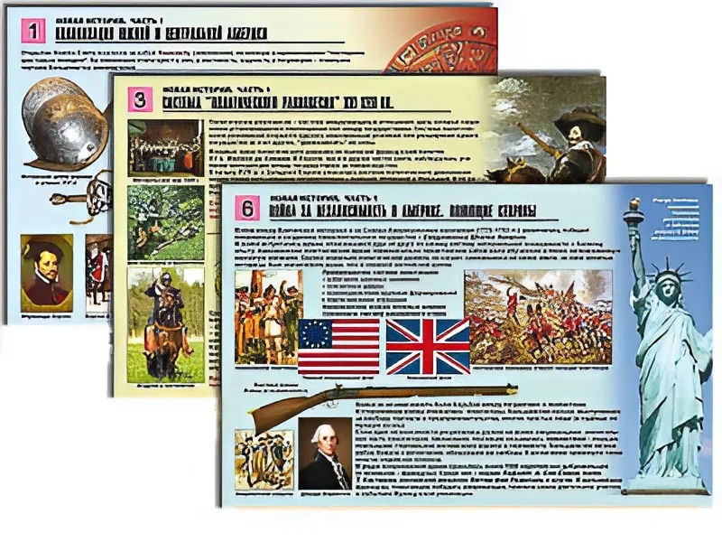 Комплект таблиц по истории "Новая история. Часть 1" раздаточные (цветные, ламинированные, А4, 6 штук) - fgospostavki.ru - Челябинск