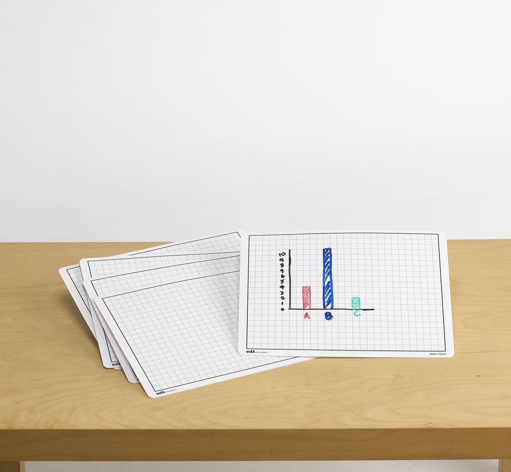 С одной стороны, маркерная доска чистая, с другой - изображена разлиновка: "клетка".