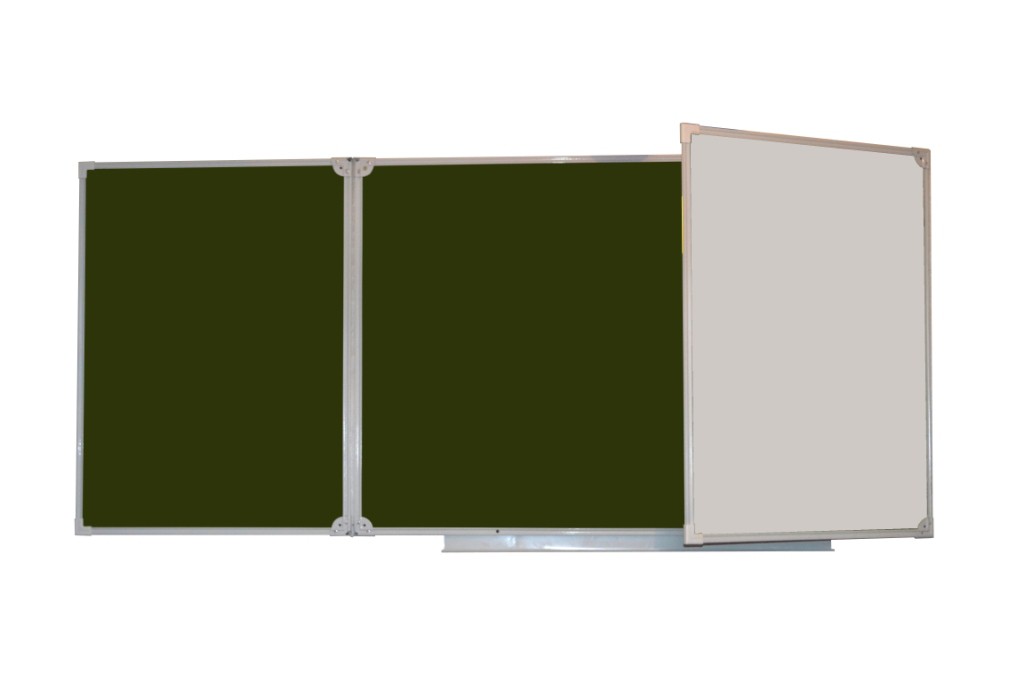Доска школьная настенная 3-хэлементная для письма мелом и маркером, 5 рабочих поверхностей. В качестве рабочих полотен используются только высокопрочные материалы, специально предназначенные для школьных досок.