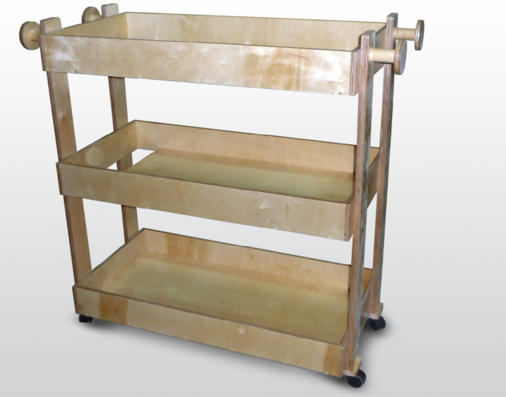 Тележка для спортинвентаря и игрушек (3 полки) 115х50х90см (фанера лак)