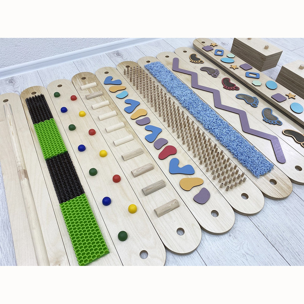 Игровое оборудование для развития равновесия и массажа стоп у детей. Из набора можно построить дорожки различной высоты и конфигурации с поворотами под разными углами, чтобы детям каждый раз было интересно заниматься.