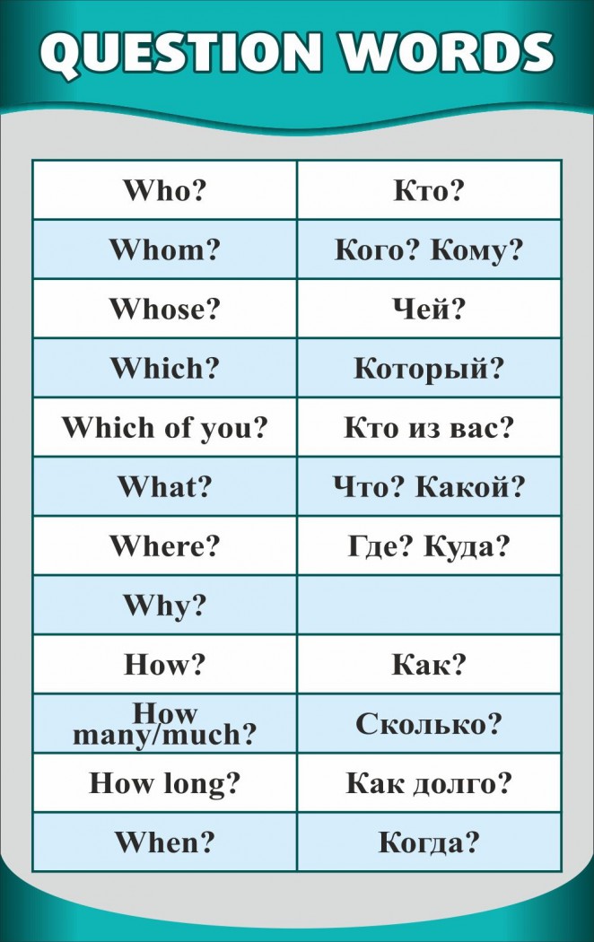 Наглядное пособие в виде информационного настенного стенда «ВОПРОСИТЕЛЬНЫЕ СЛОВА» ненавязчиво напомнит Вашим ученикам о том, как переводятся все базовые вопросы из английского языка на русский.