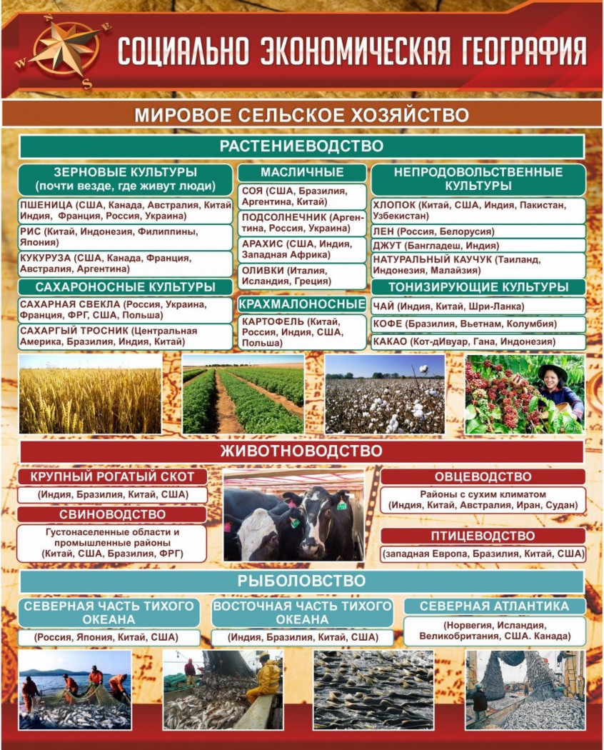 Стенд "Социально-экономическая география. Сельское хозяйство"
