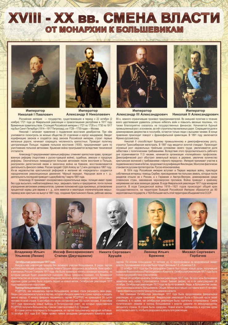 Главная Каталог Стенды Кабинеты История и обществознание Стенд "Смена власти. От монархии к большевикам"