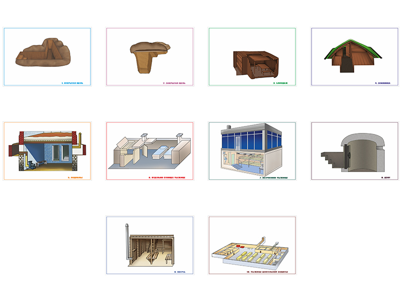 Комплект тематических магнитов выполнен в виде предметов внутреннего убранства и названий отдельных помещений и перекрытий, предусмотренных в конструкции убежищ и укрытий. Редкоземельные магниты предназначены для закрепления фолий на магнитной доске.