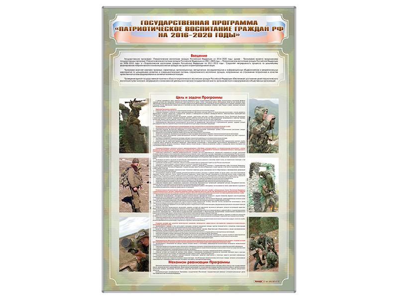 Главная Каталог Стенды Кабинеты ОБЖ и НВП Стенд "Государственная программа "Патриотическое воспитание граждан РФ на 2016-2020 годы."
