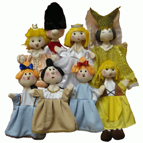 Набор состоит из 8 перчаточных кукол: Золушка простая, Золушка на балу, Фея, Принц, Мачеха, Сестра 1, Сестра 2, Гвардеец