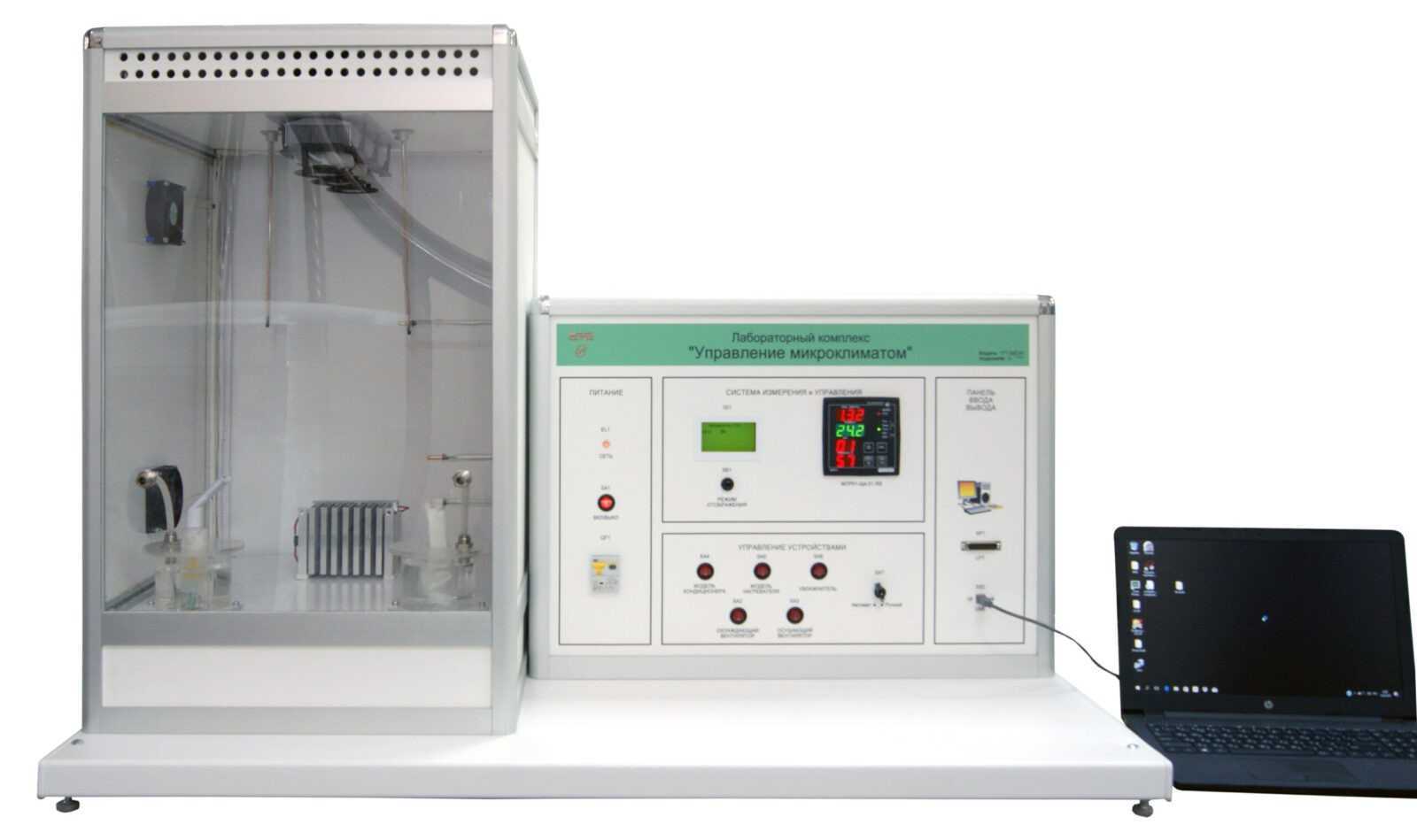 Лабораторный комплекс состоит из лабораторного стенда «Управление микроклиматом» и ноутбука, с установленным программным обеспечением.