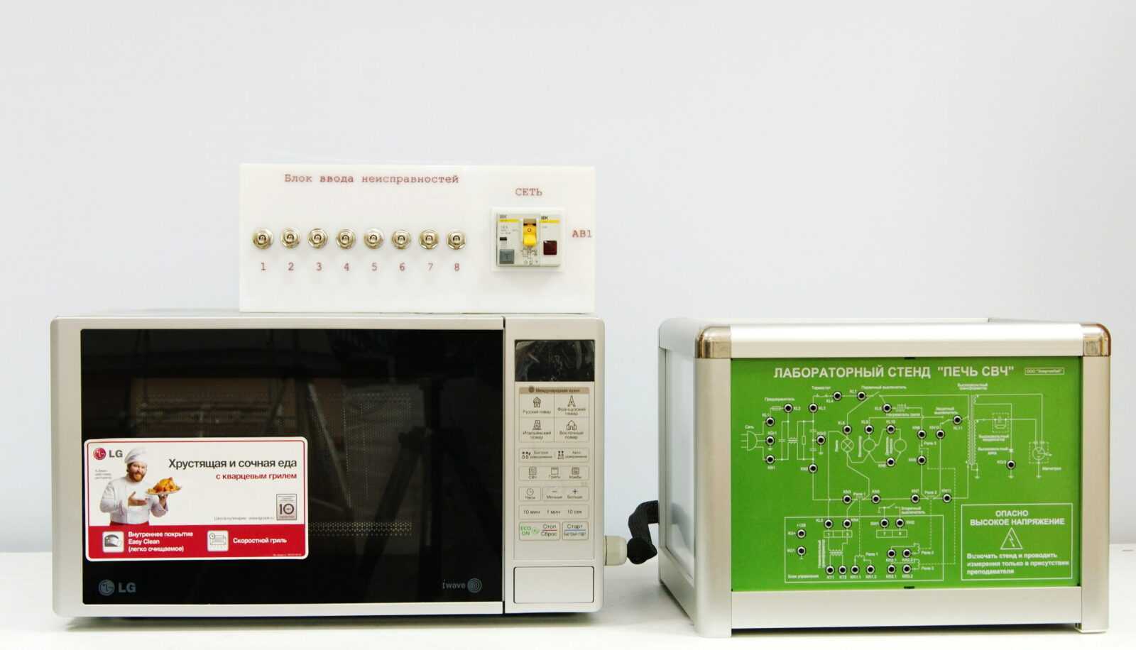 Учебный лабораторный стенд предназначен для изучения функционирования современной бытовой микроволновой печи с электронным управлением, имитации неисправностей в печи, поиска и локализации неисправностей.