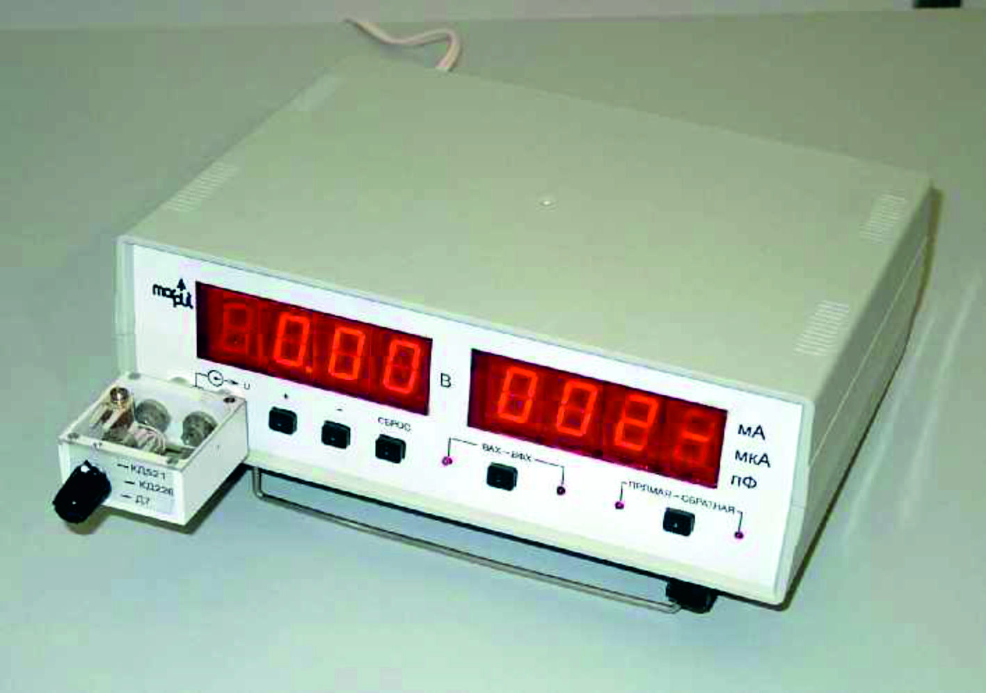 Установка для изучения p-n перехода ФПК-06 предназначена для изучения свойств, которыми владеет контакт полупроводников n-типа и р-типа (р-n переход). Установка позволяет снимать и исследовать вольт-амперные характеристики (ВАХ) промышленных диодов для прямого и обратного напряжения и вольт-фарадные характеристики (ВФХ).