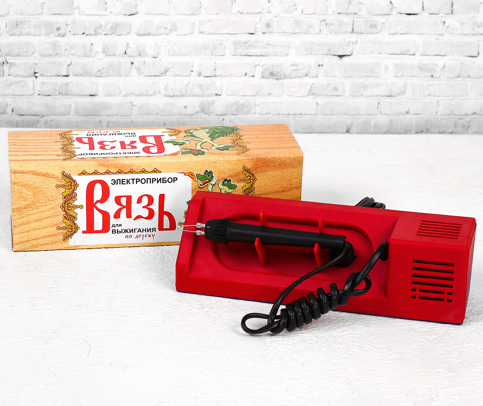 Лёгкий и безопасный электроприбор состоит из пластмассового корпуса, понижающего трансформатора, регулятора накала иглы, карандаша со сменными иглами. Его можно использовать как для домашних занятий, так и на уроках труда в школах и детских садах, при обучении в кружках эстетического воспитания. Выжигание по дереву способствует развитию творческих способностей, аккуратности и терпеливости.