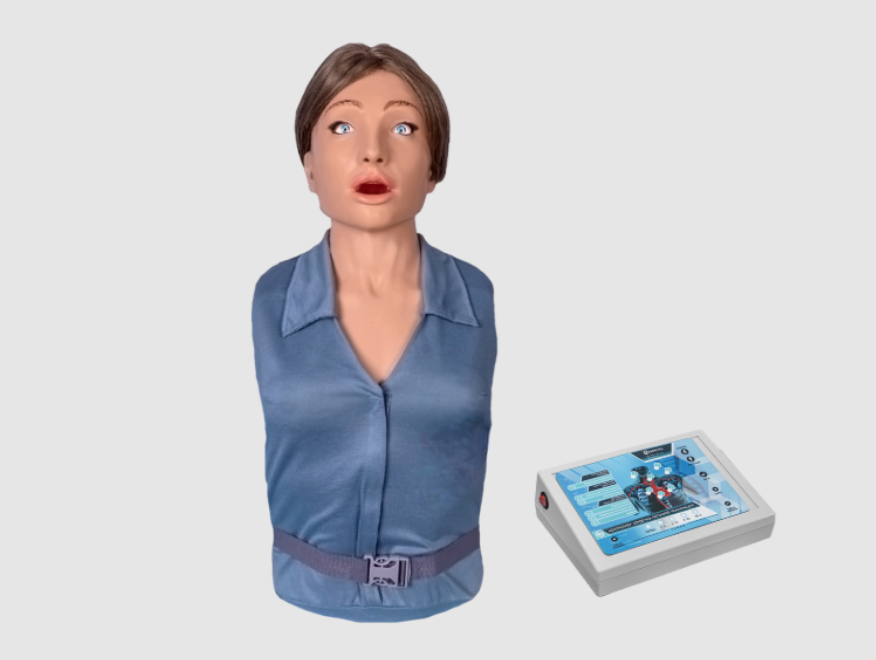 Тренажер-манекен представляет собой имитацию тела взрослой пострадавшей женщины и предназначен для отработки приемов сердечно-легочной реанимации с возможностью контроля качества выполнения упражнений.